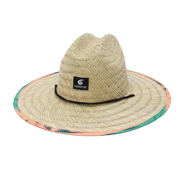 GEMVIE UPF 50+ Straw Lifeguard Hat,Unisex Straw Sun Hat Printed Wide Brim Summer Beach Straw...