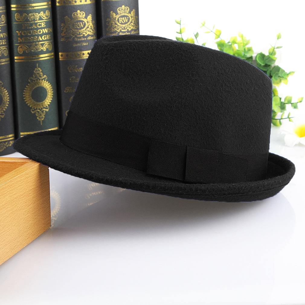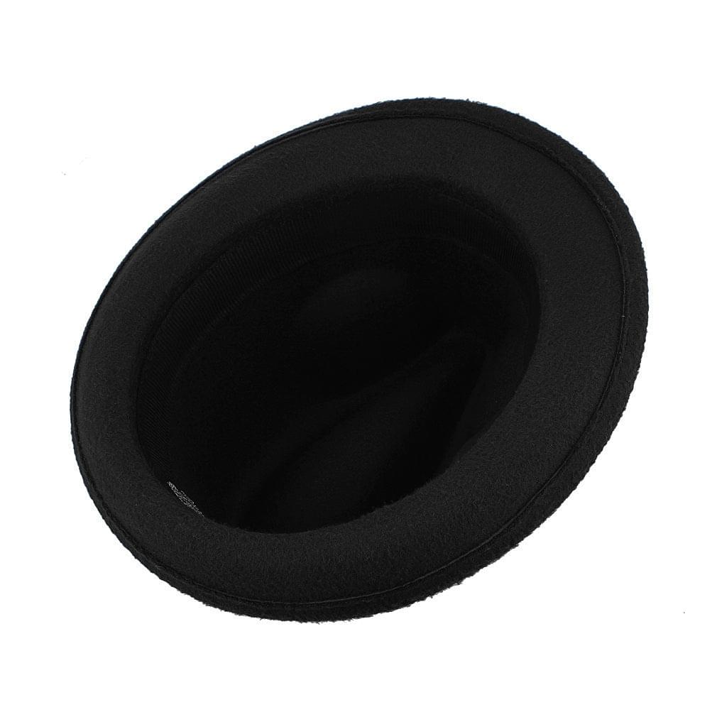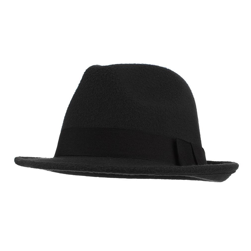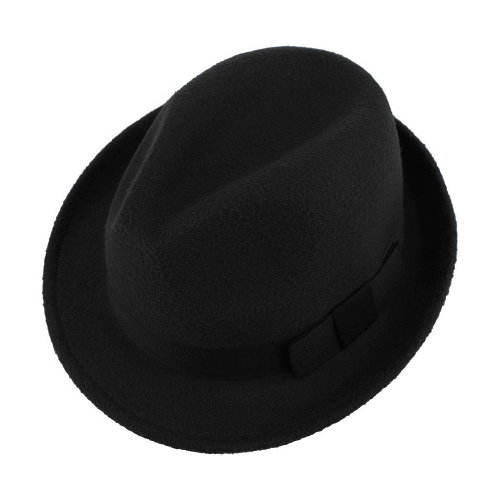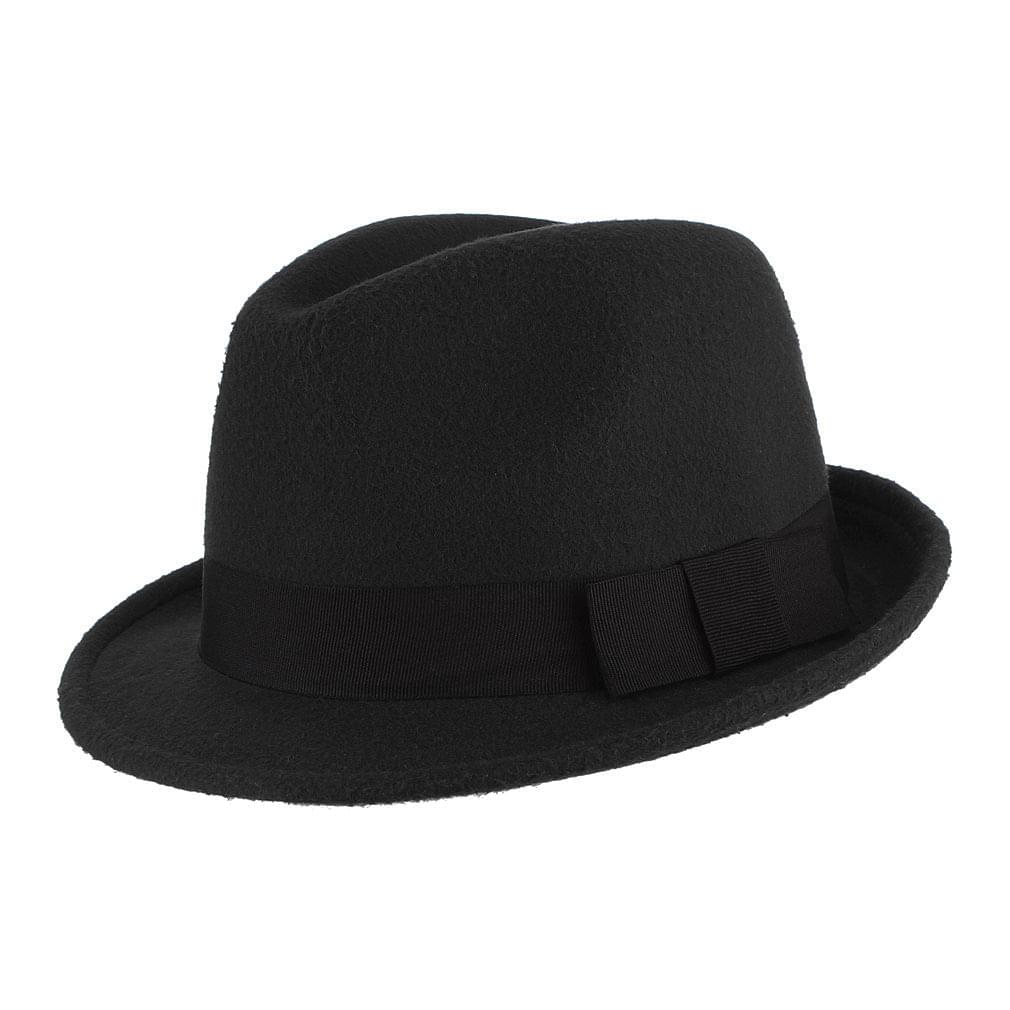 GEMVIE Men's Warm Wool Blend Dent Trilby Panama Fedora Gangster Hat Black