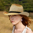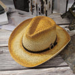 GEMVIE Straw Cowboy Hat for Women Mens Classic Belt Buckle Western Cowboy Sun Hat Roll Up Brim Fedora Straw Cap