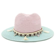 Gemvie Unisex Wide Brim Panama Fedora Straw with Shell Belt Sun Hat Adorable Summer Hats Beach Sun Hat