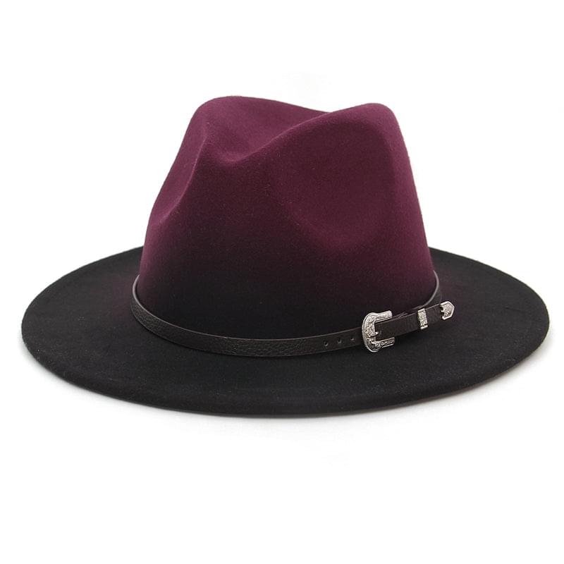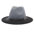 GEMVIE Unisex Wool Felt Fedora Hat Classic Gradient Wide Brim Panama Jazz Hat Buckle Belt Fedora Cap