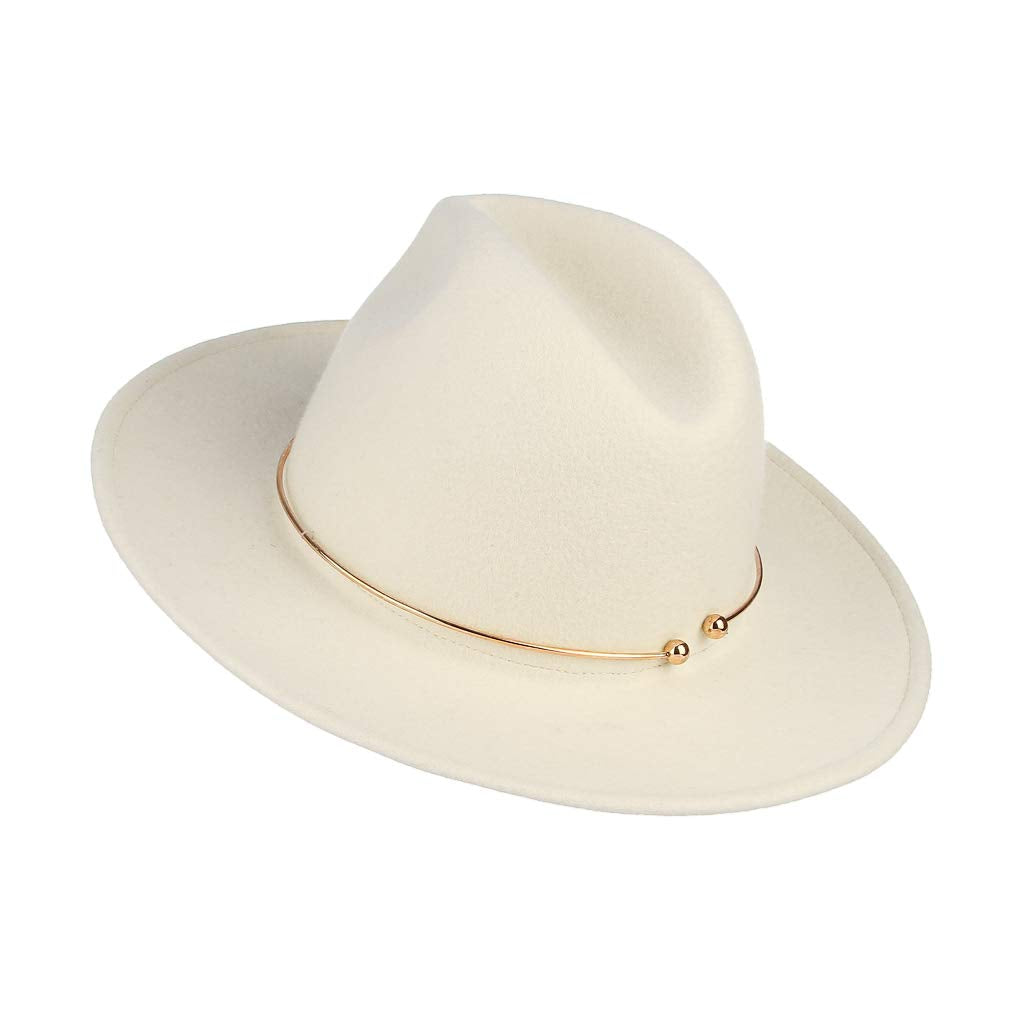 Gemvie Women Wool Fedora Wide Brim Hat with Alloy Band
