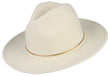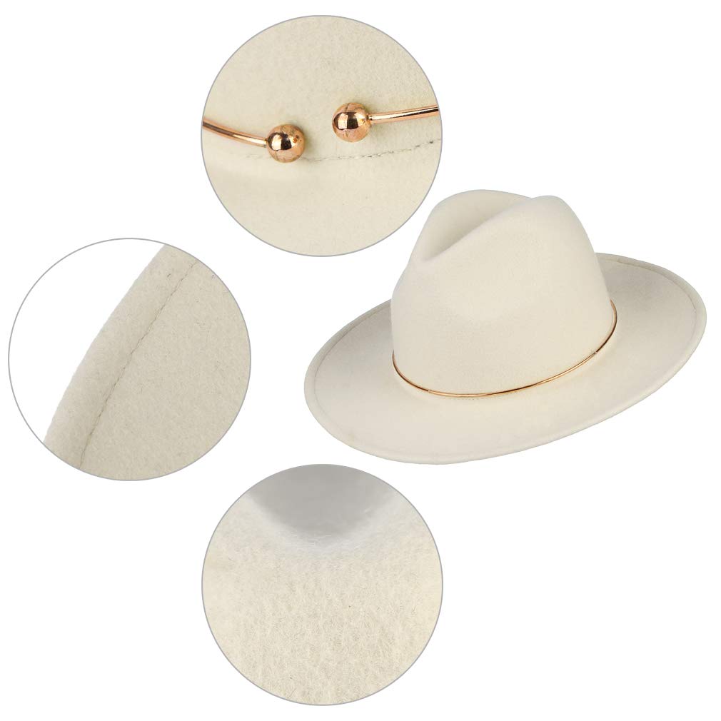 - Design: Classic and elegant fedora hat, features with 2.75 inch flat wide brim,beautiful tear-drop shaped crown is 4.9 inch,cream white hat body combine with alloy band,beautiful and full of noble feeling.