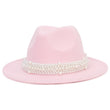 • Trendy fedora hat:Wide brim fedora hat is decorated by big pearl band,shining pearl makes you more charming and outstanding.Pearls in close tandem,not easy to fall off,please rest assured to buy,a vintage and fashion fedora hat.