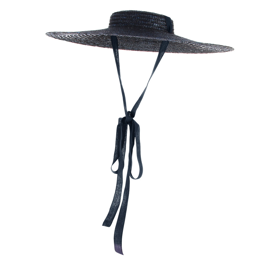 Women's Elegant Large Brim Boater Straw Sun Hat Summer Hats Flat Top Straw Hat Beach Sun Hat