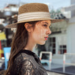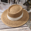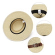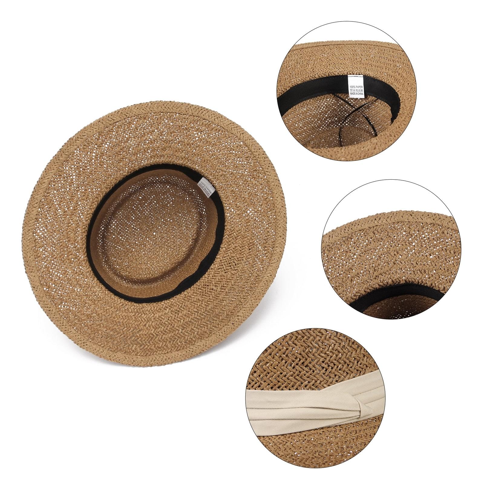 Gemvie Premium Straw Fedora Hat,Wide Brim Sun Protection Beach Flat Straw Hats