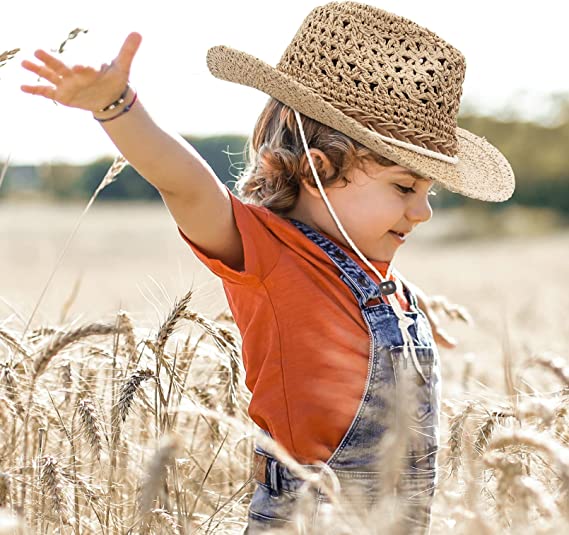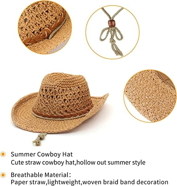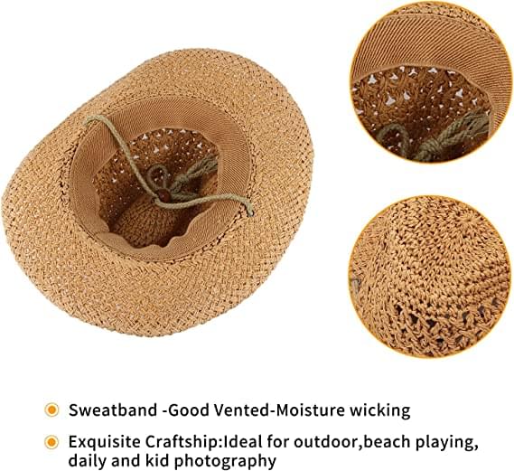 GEMVIE Baby Toddler Kids Sun Straw Western Cowboy Hat Wide Brim with Chin Strap