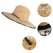 GEMVIE Straw Hat for Men and Women Lifeguard Sun Hat Summer Beach Hat Wide Brim Pure Black Patch Print